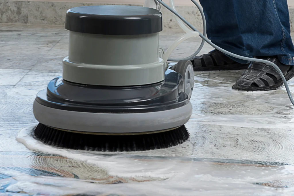 خدمة تنظيف شاملة باستخدام مواد آمنة لإزالة الدهون والأوساخ ومنح الأرضيات نظافة ولمعانًا يدوم